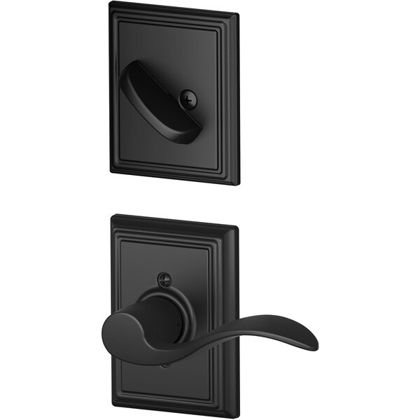 The Schlage Interior Handleset Accent Lever and Interior Single Cylinder Deadbolt Thumbturn with Addison Trim in Matte Black is perfect for use on the interior of your front door. The Accent Lever is widely popular for its elegant wave –like design that effortlessly matches a room's style without overshadowing it, while the Addison trim's distinguished look incorporates subtle details without losing its classic simplicity. The striking appearance of the Matte Black finish creates an elegant look that's sure to be noticed in any style setting. Plus, it's been designed and tested with strength and durability in mind.